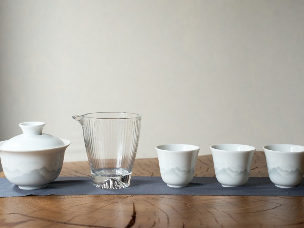 Starannie wykonany i przemyślany zestaw do parzenia herbaty poza domem. Gładka biała ceramika z delikatnym „górskim” wzorem; łatwa w czyszczeniu i przyjemna w dotyku. Całość składa się do sztywnego etui i zajmuje minimum miejsca: można zabrać w podróż, na piknik lub trzymać w biurku w pracy.