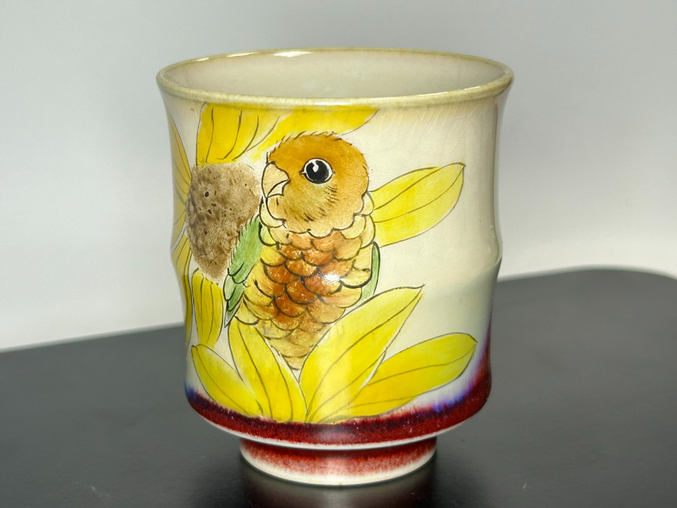 Czarka Ptak i kwiaty, ceramika Jingdezhen, 75 ml