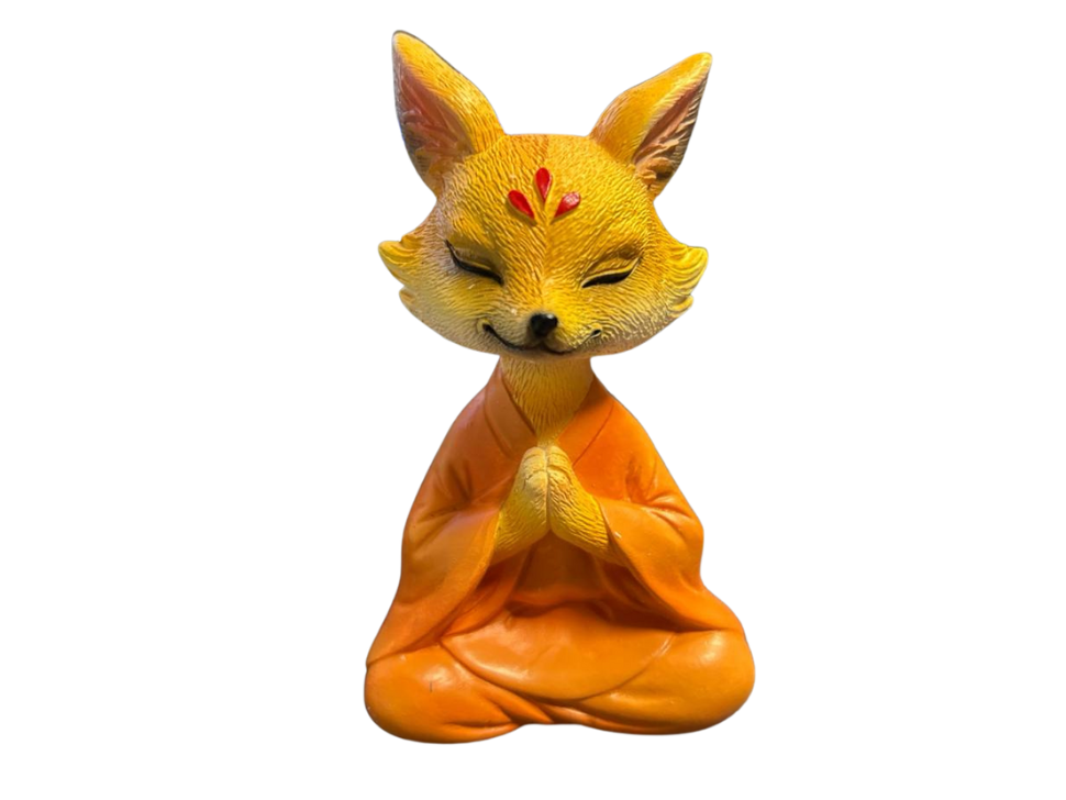 Medytujący Lis, figurka herbaciana, żywica, 9x6 cm
