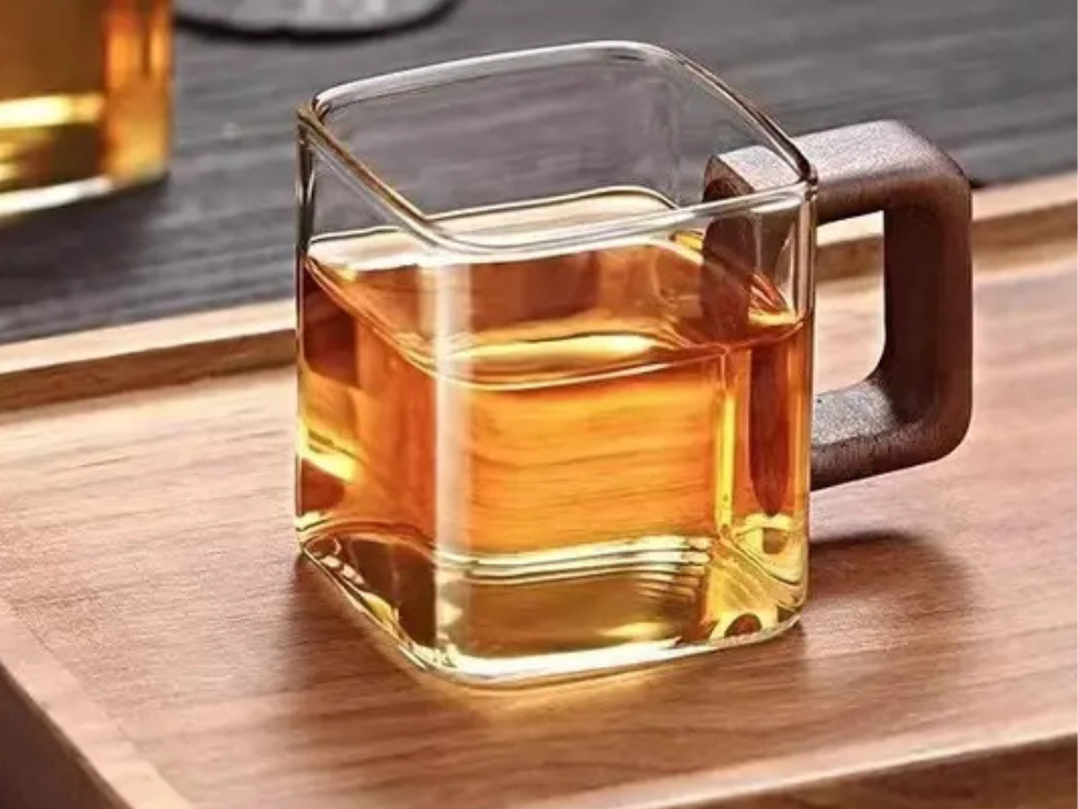 Kubek do herbaty, szkło, drzewno, 150 ml